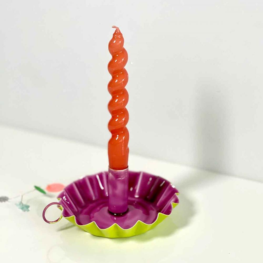 Sei frech und wild und wunderbar- so wie dieser farbenfrohe nostalgische Kerzenständer in der Farbkombination viola-lemongreen!