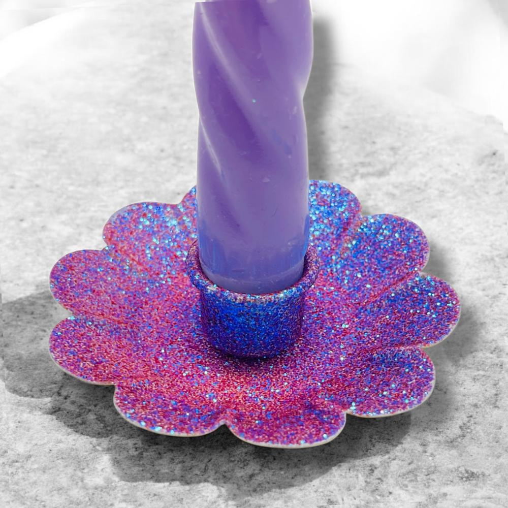 Produktinformationen "Kerzenhalter Flower Glitter lavender"