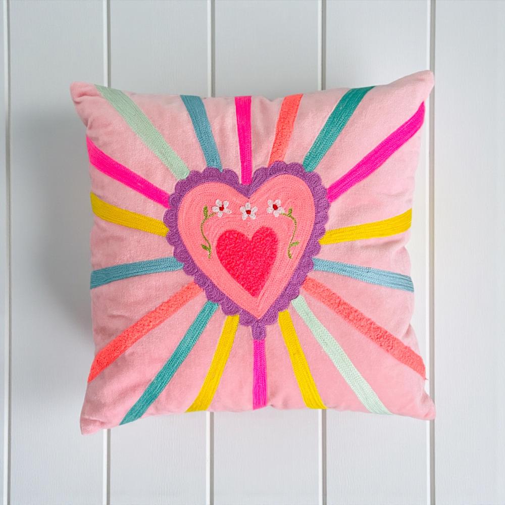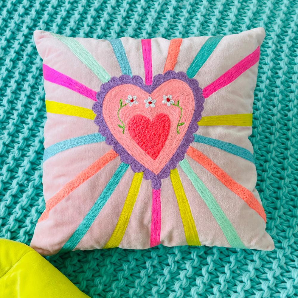 Also leg deinen Kopf auf das charmante Kissen mit der edlen Stickerei und dem schönen Herzen.
