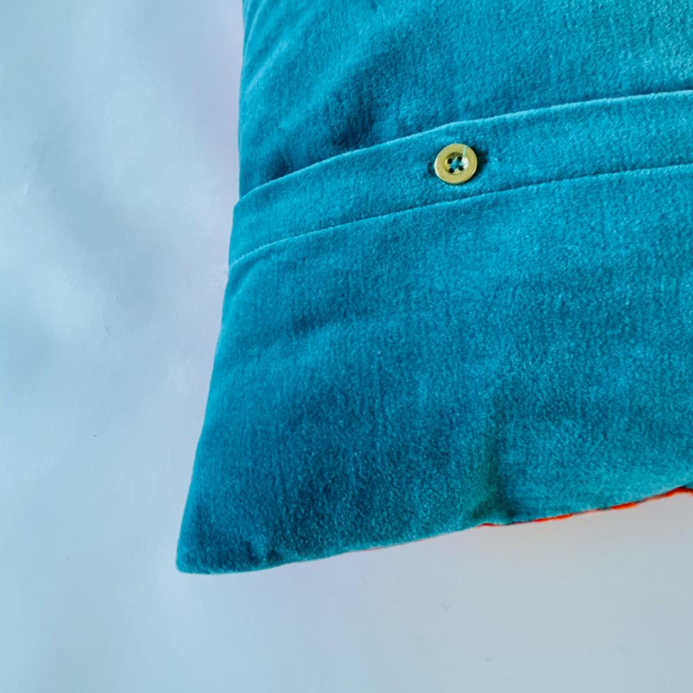 Das Kissen fühlt sich super weich an- das liegt an dem feinen Baumwollsamt, der als Grundmaterial für das feine Dekokissen verwendet wurde. Auch die Rückseite ist aus Samt. Da lehnst du dich wirklich gerne an und verbringst stilvolle Stunden auf deiner Couch!