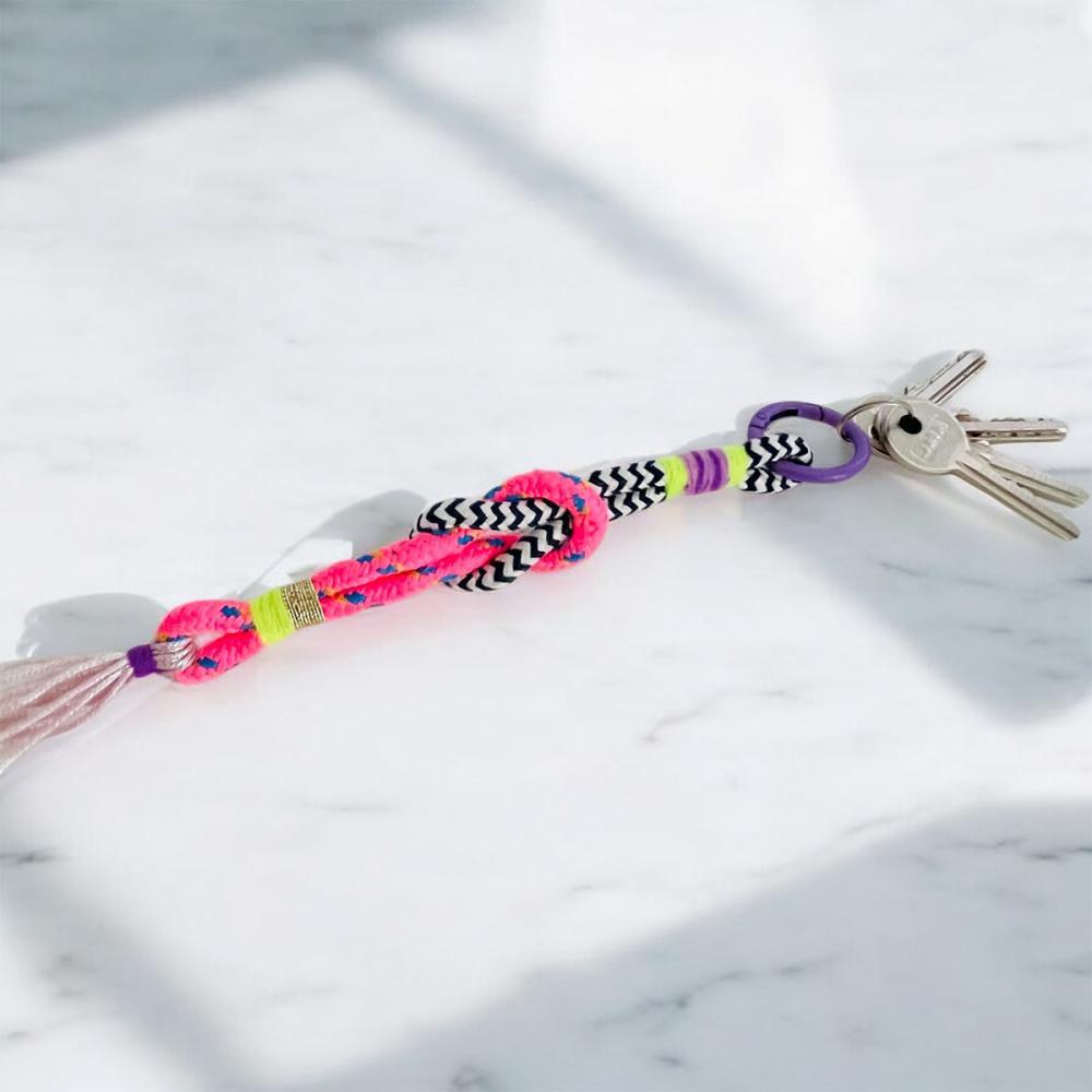 Es ist schon eine ganz besondere Kunst, so feine Fäden derart raffiniert zu binden, daß am Ende sooo ein schönes Produkt entsteht! Jede Farbe, jedes Garn ist sorgfältig ausgesucht und mit Bedacht in Szene gesetzt ! Wir empfehlen daher, die ganze Pracht möglichst sichtbar zu tragen- also lass das Schlüsselband lässig aus der Hosentasche hängen oder befestige es an einer Tasche als Schmuckstück. Du kannst den Anhänger an dem bunten Ring irgendwo befestigen oder deine Schlüssel darin einfädeln- denn dieser Metallring lässt sich öffnen.