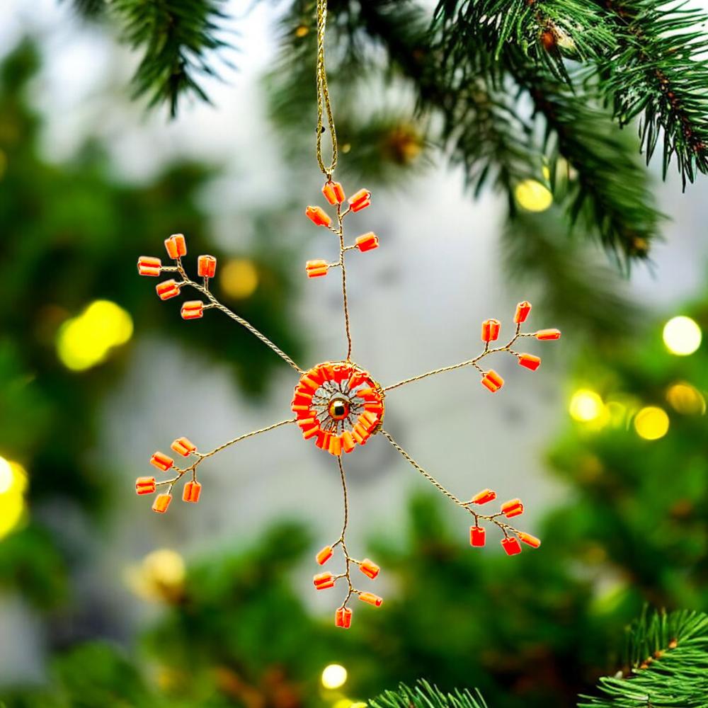 Das filigrane Design der Starflower Dekoration formt so ein bezauberndes ultrafeines Muster! Kaum zu glauben, daß dieser Anhänger von Hand so gleichmäßig geformt wurde- feinfühlig und sorgsam sind die leuchtenden Perlchen aneinandergereiht und aufgefädelt. Das ist ein echtes kleines Kunstwerk- ein Schmuckstück, das sowohl einen Weihnachtsbaum aufpeppt als auch als Ornament auf einem festlichen Tisch große Aufmerksamkeit auf sich zieht!