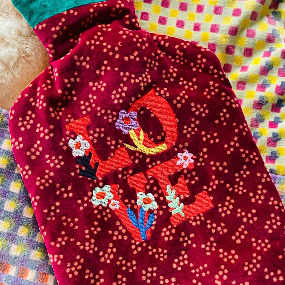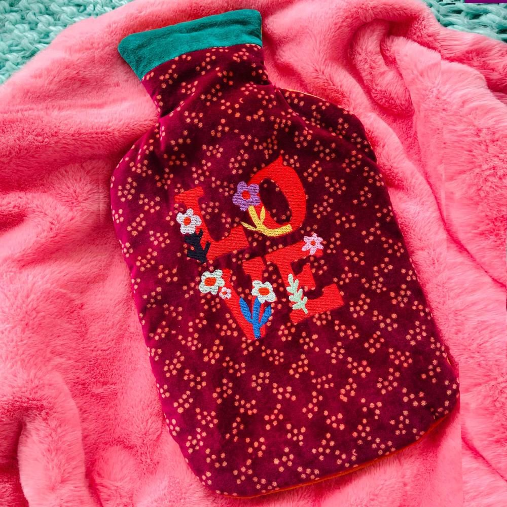 Von LOVE können wir niemals genug haben und daher gibt´s bei uns natürlich auch eine Wärmflasche mit dem wichtigsten Wort der Welt! Dabei sind die 4 Buchstaben in schönster Manier und absolut hochwertig in der knalligen Farbe Pink auf weichen Baumwollsamt gestickt.