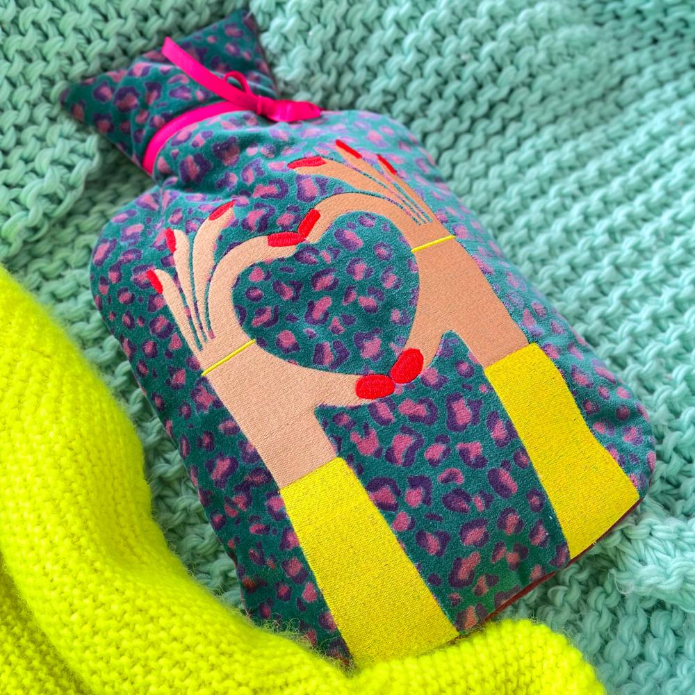 Es gibt viele Arten, um Zuneigung auszudrücken! Z.B. 2 Hände, die ein Herz formen! Auf dieser hübschen Wärmflasche ist dieses Motif auf ein trendiges Leopardenmuster gestickt- wow, was für eine Kombi! Der Leoprint ist auf weiches hochwertiges Samtmaterial gedruckt, was der Wärmflasche so eine tolle Haptik und auch einen edlen Look verleiht. Sie ist sorgsam und aufwändig verarbeitet und ein tolles Geschenk für einen dir lieben Menschen!